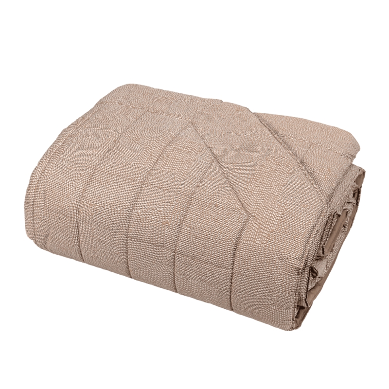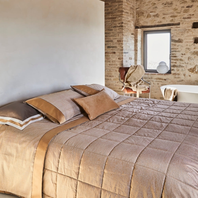 Questa fibra naturale si presta molto bene anche a lavorazioni raffinate come percalle e raso di cotone, oltre al puro cotone e jacquard, che arricchiscono il tessuto con effetti tridimensionali e texture eleganti, senza appesantirne il peso. Inoltre, la sua versatilità permette di ottenere copriletti leggeri ma allo stesso tempo solidi e durevoli, ideali per un uso quotidiano.