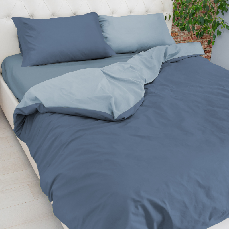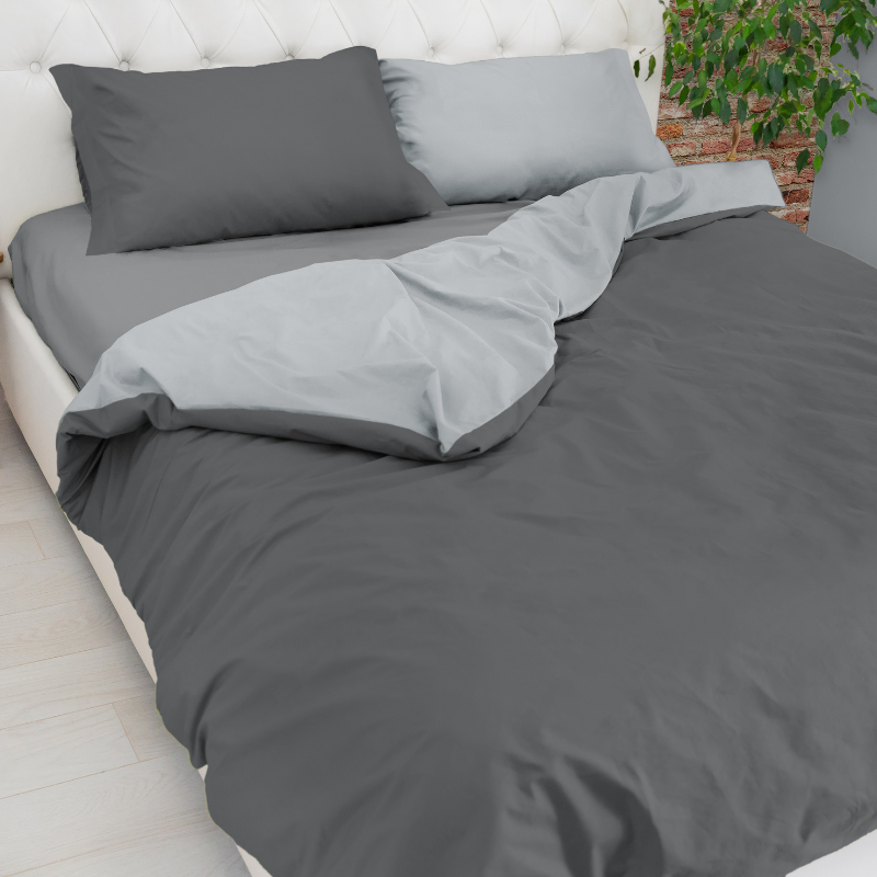 Parure copripiumino matrimoniale Bicolor Easy, 100% cotone prelavato no stiro.