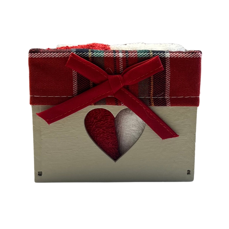 Set 4 Lavette In Vaschetta Di Legno Tartan