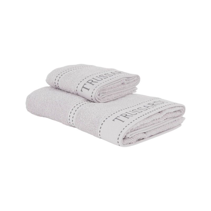 La coppia asciugamani Ribbon in morbidissima spugna di puro cotone rappresenta il vero lusso e l’eleganza tipici del marchio Trussardi.  Il set è composto da un asciugamano viso e un asciugamano ospite con la Monogramma Trussardi.