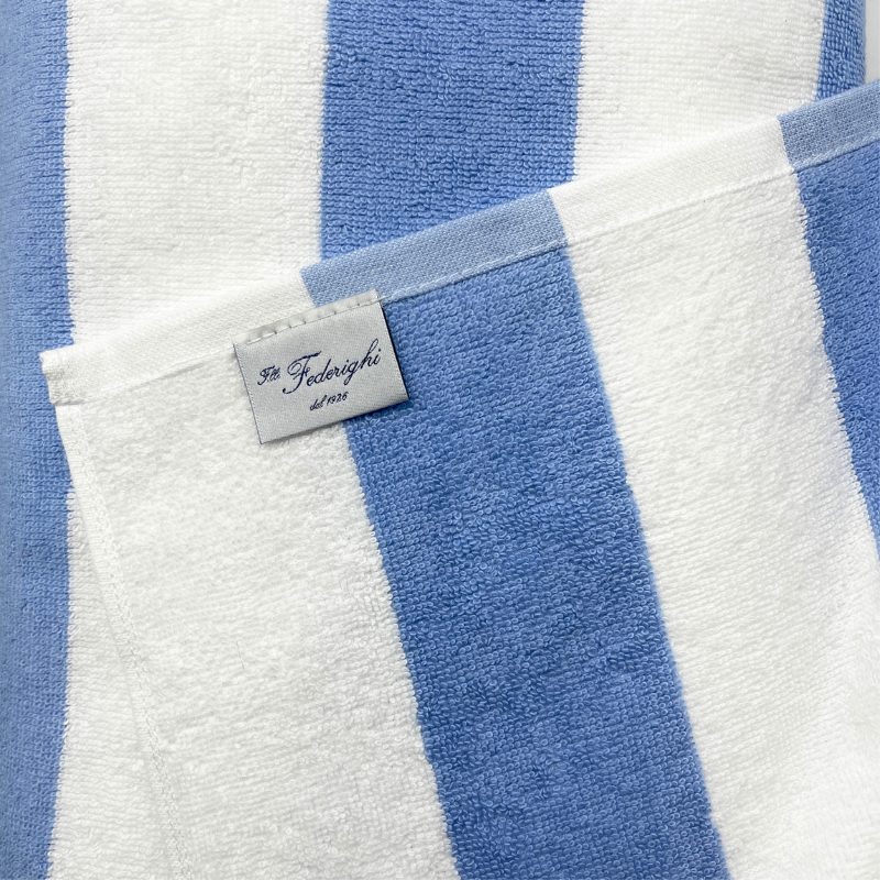Telo mare Santorini, realizzato in spugna di puro cotone 100% jacquard tinto filo, questo telo è sinonimo di alta qualità e design raffinato.
